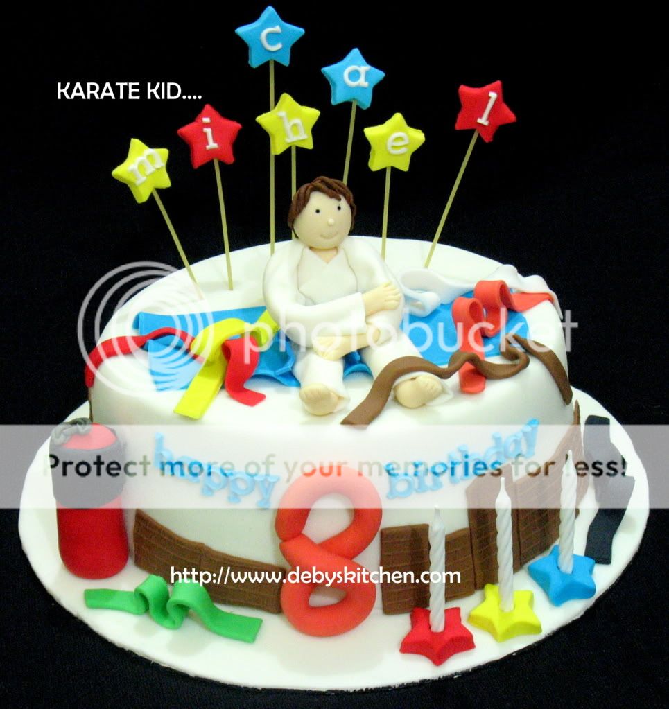 Pesanan Ci Inge untuk bday anaknya, tema cake nya Karate, isi kue nya sponge cake cokelat................